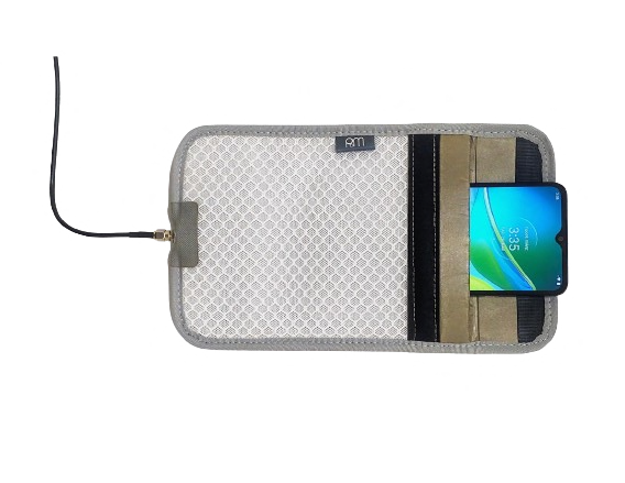 The PoM shield is a soft enclosure which virtually eliminates the EMFs emitted by mobile phones while diverting them to a remote antenna, far from the phone and far from you.