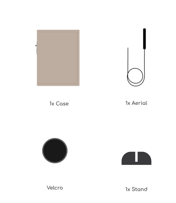 Unpack the PoM shield and remove all packaging material. Open the antenna box and unpack the antenna, antenna base and the supplied Velcro-type material stickers.